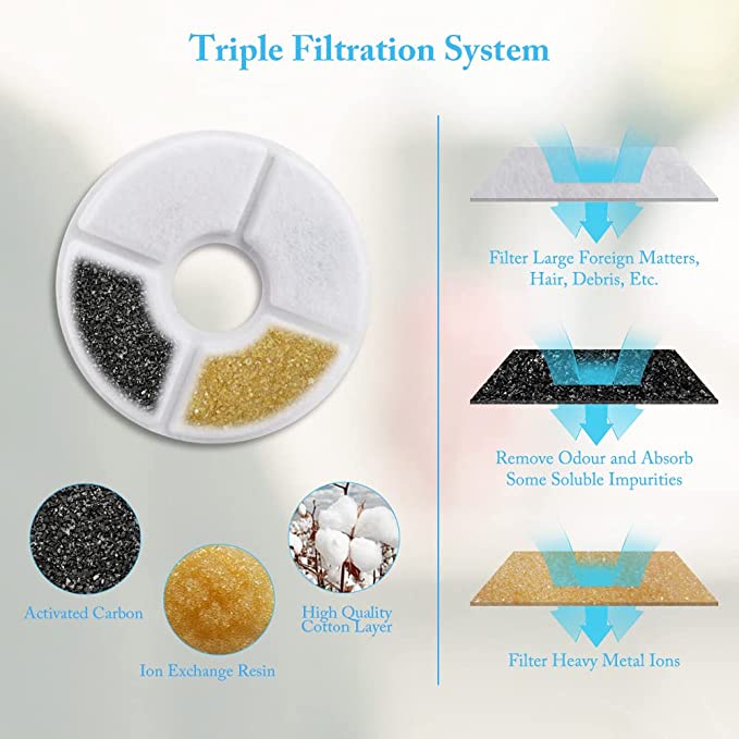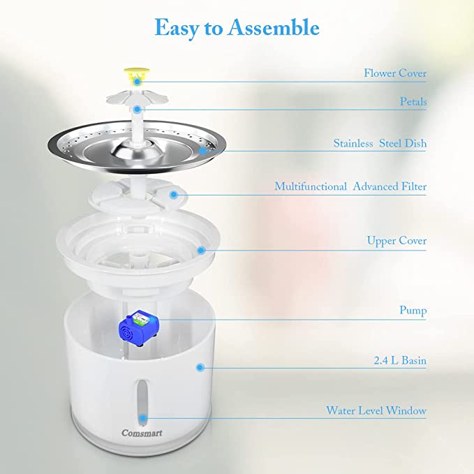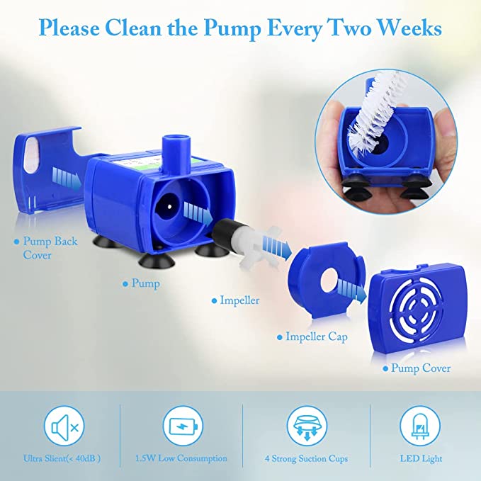 Pompe de conception La pompe bleue DR-DC160 de conception unique est déployée avec une ventouse personnalisée pour réduire le bruit au minimum. Une roue de haute qualité peut garantir des produits durables à utiliser. L'eau propre Le filtre de conception unique remplaçable peut filtrer efficacement les cheveux, l'odeur et le chlore. Par conséquent, la fontaine peut donner une eau plus propre aux animaux de compagnie et réduire le risque de développer des maladies. Le filtre à charbon aide à éliminer ce qui absorbe les odeurs et le mauvais goût. Haute Qualité La fontaine pour animaux de compagnie est faite de plastique PP antibactérien finement poli et d'un couvercle en acier inoxydable, écologique, non toxique, inodore et durable. La structure Simple à dégagement rapide est conçue pour un retrait et un nettoyage faciles. 2.4L Capacité Pas besoin de remplir l'eau fréquemment, et il peut répondre aux besoins de boisson des chats, chiens, oiseaux et autres animaux de compagnie de différentes tailles. Pas besoin de s'inquiéter que vos animaux domestiques ne reçoivent pas assez de boisson fraîche lorsque vous allez au travail. Visuel Équipé de LED, qui vous permet de voir le niveau de l'eau. Lorsque vous travaillez, la LED est bleue. Le produit ne fonctionne pas tant que le niveau d'eau ne dépasse pas la pompe. Alimenté par un câble USB. Coffre-fortHygiénique, PratiqueLavable au lave-vaisselle. Spécification: Type: Fontaine À Eau Matériau: plastique PP + acier inoxydable Quantité: 1pc Couleur de l'article: blanc et argent Capacité en eau: 2.4 litres (80 oz) Tension d'entrée: 5V,1A Consommation électrique: 1.5W Imperméable: IP68 Longueur du câble: 1.6M/5,2ft Taille de l'article: env. L18.6cm x L18.6cm x H13.1cm/7.3*7.3*5.1 " (L * L * H) Poids Net: 697g/24.6oz